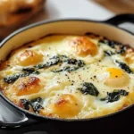 - Method: Sauté spinach with aromatics, nest in buttered 6-ounce ramekins or an ovenproof skillet, crack eggs on top, sprinkle cheese, and bake at 375°F (190°C) until whites are set.