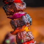 - Vegetarian: Replace beef with 1.5–2-inch seared mushrooms, halloumi, or marinated tofu on skewers; grill the same high-heat method.