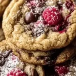 Delicious cookies featuring a magical combination of brown butter, fresh raspberries, and chocolate chips, creating a flavor explosion in every bite.