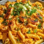 A creamy and spicy pasta dish featuring tender chicken and bold buffalo sauce, perfect for quick weeknight dinners.