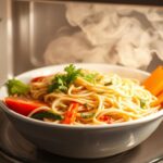 Microwave cooking is quick and easy. It’s great for fast meals in small kitchens or dorm rooms. You can make dishes like soba noodles with steamed veggies in just a few minutes.