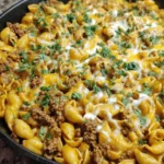 This recipe involves browning ground beef, simmering it with pasta and cheese, creating a delightful blend of flavors that will have everyone reaching for seconds.