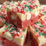A quick and easy no-bake fudge that combines the classic taste of cake batter with delightful holiday colors, perfect for gifting or serving at holiday gatherings.