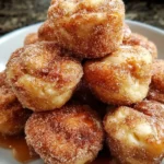 This recipe involves rolling dough pieces, coating them in a sweet mixture, and baking until golden brown, resulting in fluffy, cinnamon-sugar-coated bites.
