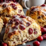 Delightful scones bursting with the fresh flavors of cranberries and zesty orange, perfect for breakfast or as an afternoon snack.