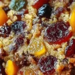A moist and flavorful fruitcake combining dried fruits and warm spices, perfect for holiday celebrations.