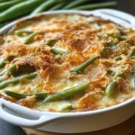 A classic Green Bean Casserole featuring fresh green beans, creamy mushroom sauce, and crunchy fried onions, perfect for family gatherings.