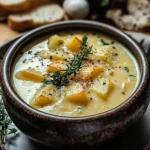 A warm and comforting potato soup packed with rich cheddar cheese and aromatic herbs, perfect for chilly days.