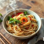 I like to mix soba noodles with lean proteins like chicken, tofu, or fish. Adding veggies makes the dish colorful and tasty. This mix makes a meal that’s good for you and looks nice too.