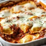 A hearty casserole layered with cheesy goodness and tender ravioli, perfect for family dinners and gatherings.