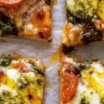 This Pesto Caprese Puff Pastry Pizza provides healthy fats from the pesto, abundant vitamins from the tomatoes, and protein from the cheese. Each slice delivers a satisfying combination of nutrients, though it’s best enjoyed in moderation due to the richness of puff pastry.
