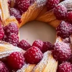 You’ll roll the dough into long strips, spoon a thickened raspberry filling down the center, then braid and join the ends to form a ring. Key techniques are chilling the shaped wreath so it keeps its form and using an egg wash for color and shine. Expect the bake to finish with a deep golden brown and the filling bubbling gently through small vents.