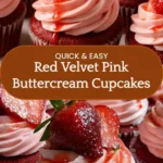 This simple recipe involves baking fluffy red velvet cupcakes and frosting them with smooth pink buttercream, creating a delightful treat perfect for any gathering.