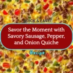 A savory quiche featuring sausage, sweet peppers, and caramelized onions, perfect for brunch or dinner.