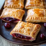 These cherry pastry pies are baked until golden brown, ensuring a crispy and flaky crust that perfectly complements the sweet cherry filling.