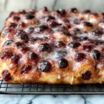 To create this delightful focaccia, start by making a simple yeasted dough. Knead the ingredients until smooth, let it rise until doubled in size, then shape it onto a baking sheet. Once spread out, make small indentations for jam dollops, and bake until golden brown. Expect a beautifully flaky yet slightly chewy bread that is soft and fragrant.