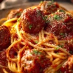 There’s nothing quite like a plate of spaghetti and meatballs to warm the heart and satisfy the soul. This comfort-food classic brings together tender meatballs, perfectly cooked pasta, and a rich tomato sauce that’s simply irresistible. As a home cook with years of experience, I’ve perfected this recipe, making it a staple in my kitchen.