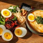 To make a balanced meal, add protein-rich toppings to your noodles. Tofu, chicken breast, and eggs are good choices. Eggs, whether soft-boiled or marinated (Ajitama), make the broth creamier and go well with noodles. For a vegetarian option, add spinach. It’s full of vitamins and helps with digestion.